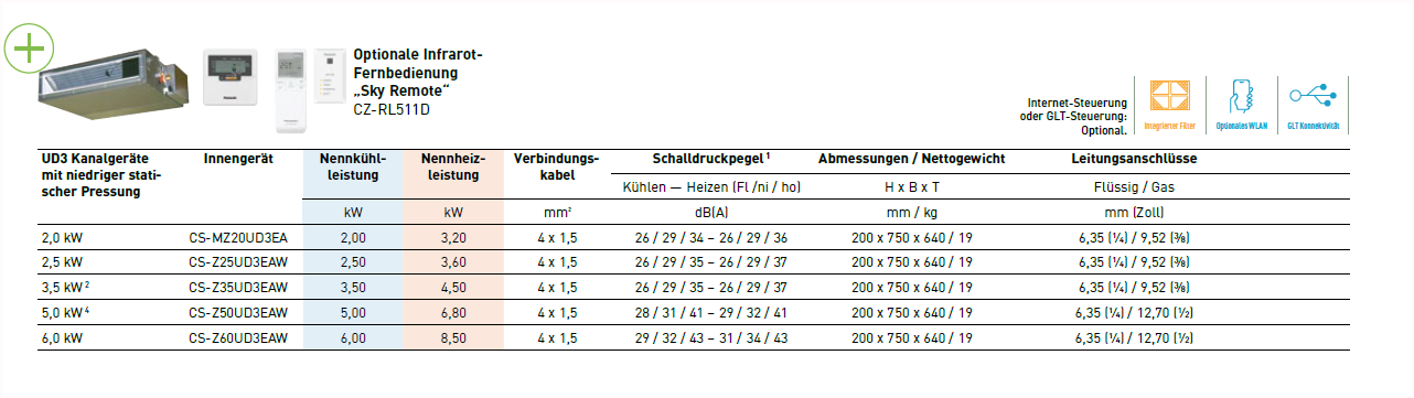 | Abmessungen Innengerät (hxbxt) | 200 x 750 x 640 mm |